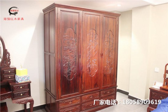 山水雕花三门衣柜